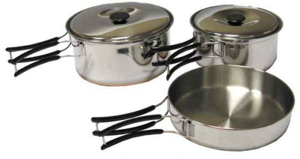 Комплект посуды C758-2 RockLand - набор посуды из нержавеющей стали на 2-3 персоны. Складные ручки посуды и синтетический мешочек позволяют разместить набор компактно  рюкзаке.