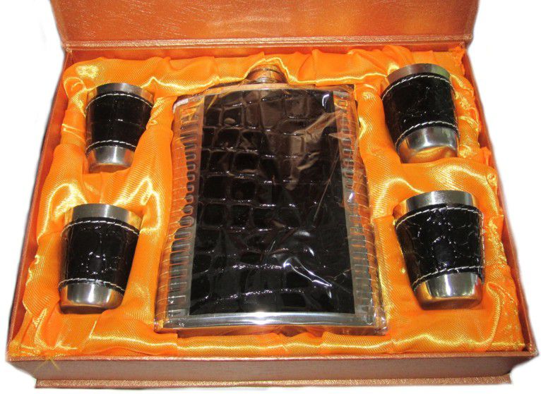 Набор из 4 рюмок 25мл из нерж. стали в кожаном чехле....