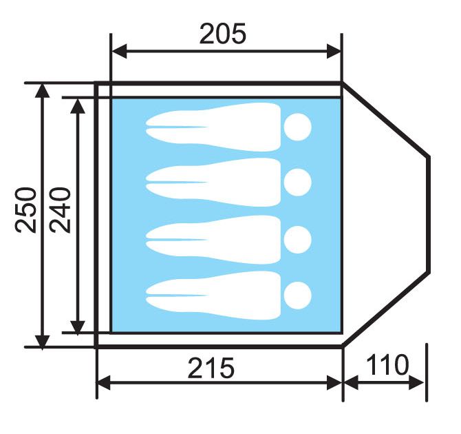 BEZIERS 4 палатка - Универсальная четырехместная туристическая палатка со светлым тамбуром с прозрачными вставками. Классическая устойчивая конструкция.