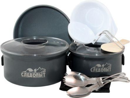 Набор посуды "Миди 2-Универсал" для 3 персон PF-CWS-K05S - набор посуды из пищевого алюминия с анодированным покрытием и рифленым дном для приготовления и приёма пищи на 3 персоны. Может использоваться на портативной плите, газовой горелке или костре, имеет малый вес и легко моется.