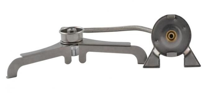 Переходник PF-GSA-02 - является адаптирующим устройством, которое обеспечивает совместимость газового оборудования использующего для питания газовые баллоны резьбового стандарта с газовыми баллонами нажимного типа использующими цанговый захват, а также служит опорной стойкой для подключения резьбового газовых плит серии S.
