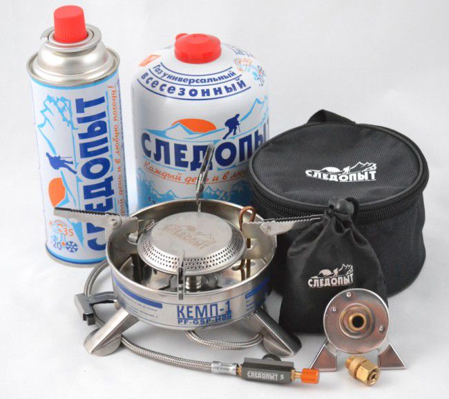 Газовая горелка PF-GSP-H09 "Кемп-1" - портативная горелка в чехле с переходником для цангового баллона. Для питания плиты используются газовые смеси в баллонах с резьбовым клапаном, а также баллоны нажимного типа с цанговым патроном через переходник в комплекте.