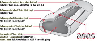 еще не проверял,но описание данное здесь сильно отличается от того что приходит вместе со спальником причем не в лучшую сторону, да и не выглядит так как на картинке,сомневаюсь что купил хорошую вещь