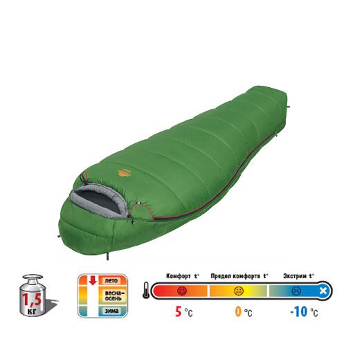 хороший спальник для плюсовых температур. спал при -5,прохладно,но не холодно. синтетическая подкладка немного холодит,но это опять же при минусе. в общем,своих денег он стоит