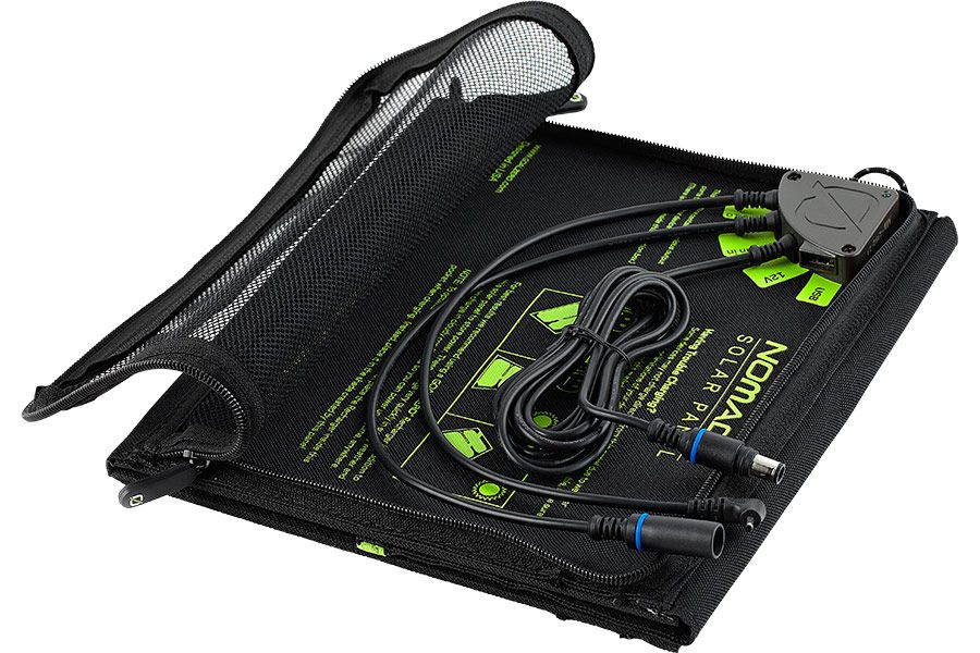 Солнечная батарея Nomad 13 - одна из самых удобных и универсальных монокристаллических солнечных батарей. Позволяет заряжать переносные устройства непосредственно через USB или вход в 12V в длительных походах и путешествиях.