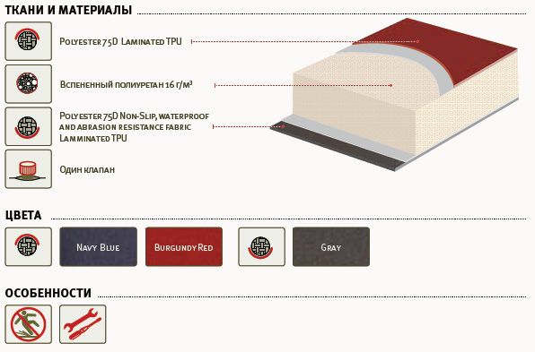 • Диагональные воздушные каналы, снижают общий вес коврика. Помогают воздуху быстрее заполнять объем и облегчают сдувание.