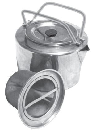 Чайник походный с ситечком TRC-066 - походный чайник со складной ручкой и ситечком для заварки чая. Быстро нагревается на костре или горелке благодаря большой поверхности дна.