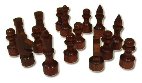 Фигуры шахматные - набор фигур обоих цветов из лакированного дерева.