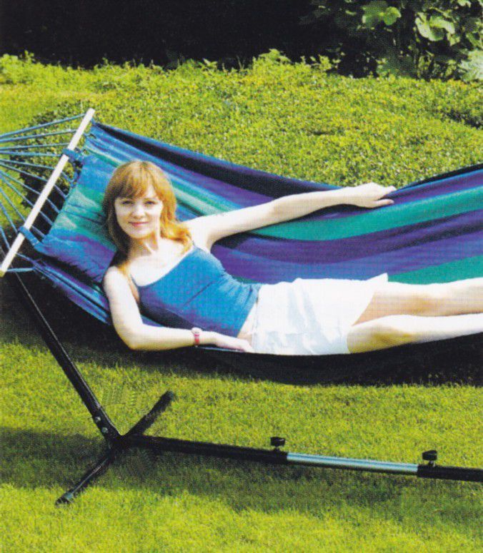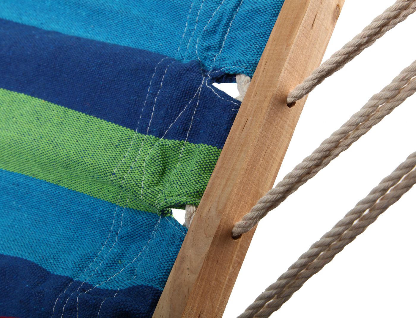 Гамак с подушкой фабричного производства с качественно прошитыми швами из плотного хлопка, устойчивого к механическим повреждениям и выгоранию.