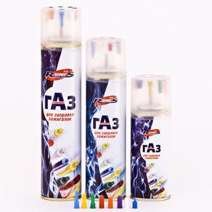 Газ для заправки зажигалок 140/210/270/400 мл - газ на основе очищенного по новейшей технологии изобутана для заправки зажигалок с адаптерами в комплекте.