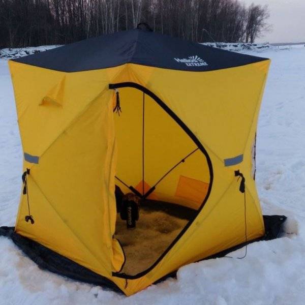 Helios куб Extreme 1,8м х 1,8м палатка зимняя широкий вход - однослойная палатка для подледной рыбалки на 2-3 человека, обеспечивает защиту от ветра, дождя и низких температур, быстро устанавливается.