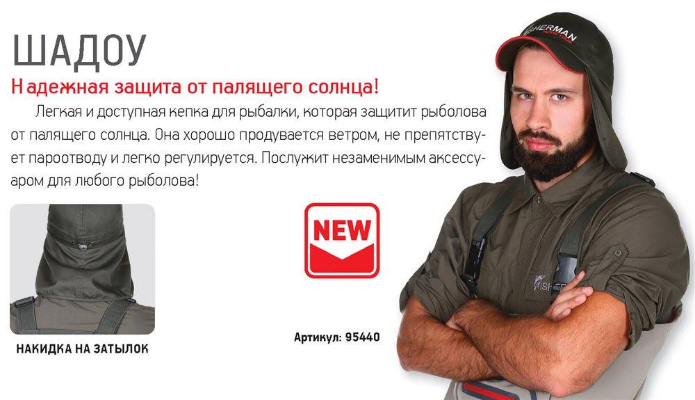 Шадоу кепка - легкая кепка с накидкой на затылок и регулировкой. Защитит от солнца, в то же время продувается ветром и не препятствует пароотводу - незаменимая вещь на рыбалке.