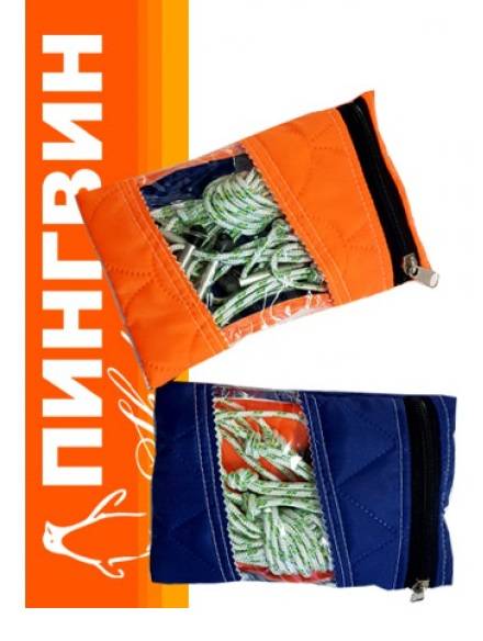 Пингвин комплект штормовых растяжек - 4 растяжки с металлическими регуляторами в чехле для фиксации зимних палаток. Для палаток типа Куб достаточно одного комплекта (4 оттяжки по сторонам), для палаток Зонтичного типа рекомендуем приобрести 2 комплекта растяжек (6 оттяжек по сторонам).