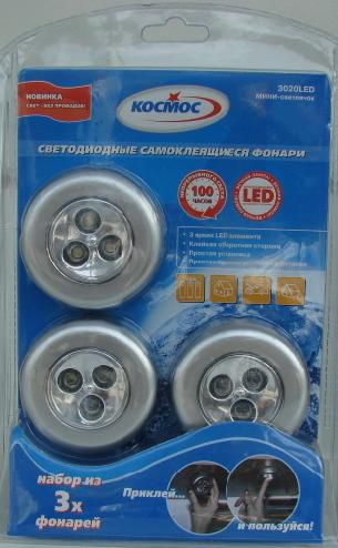 Фонарь Космос 3020LED 3 шт - фонарь-светлячок, самоклеящийся фонарь на светодиодах идеален для дома, машины, дачи