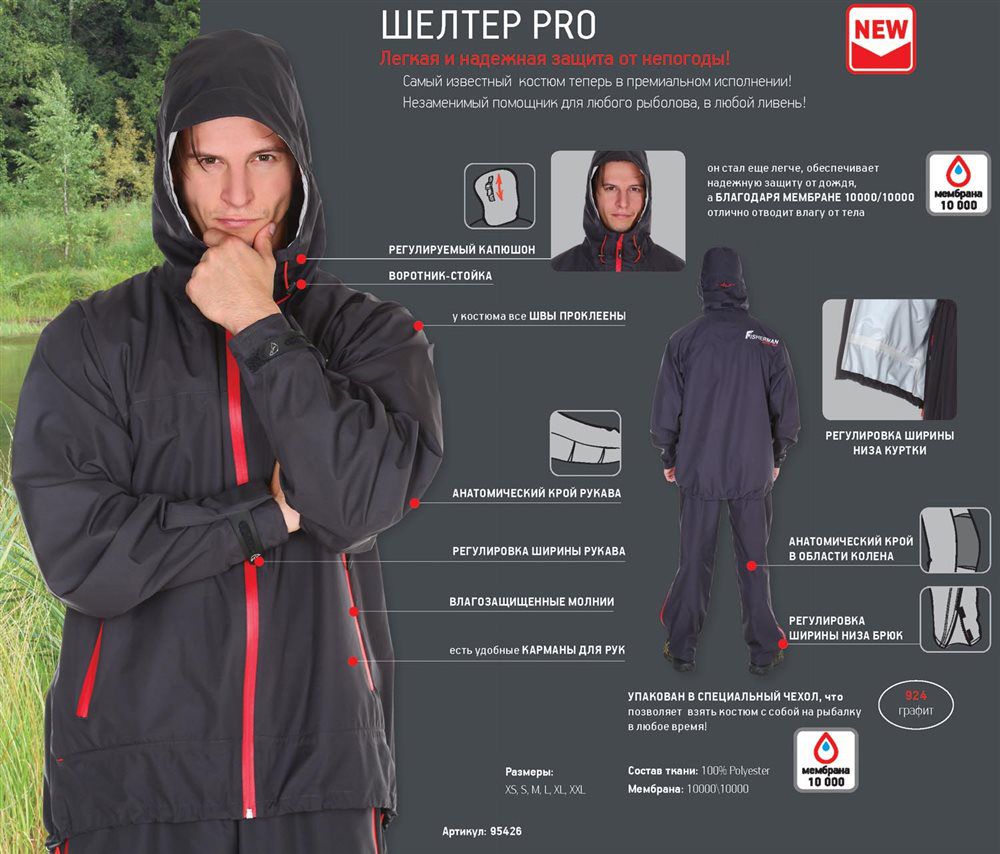 Шелтер PRO костюм рыболовный - легкий практичный костюм из мембранной ткани для рыбалки в любой ливень с эффективным пароотведением.