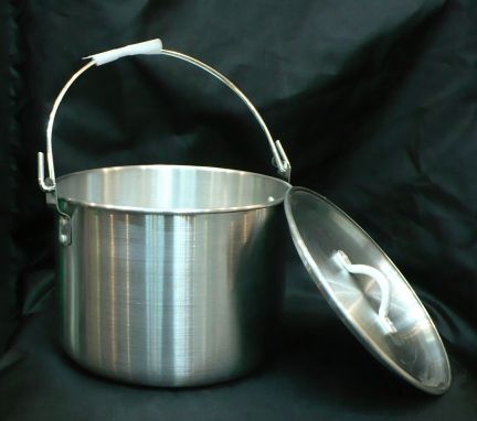 Котел алюминиевый с крышкой 4,8/9/13 л - котел с круглой ручкой, позволяющей подвешивать его над костром, и толстыми стенками, обеспечивающими долговечность использования котла. Крышка котла плотно прилегает к стенкам, исключая попадание в пищу грязи пыли и пр.