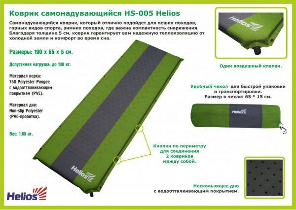 HS-005 самонадувающийся коврик - комфортный самонадувающийся коврик с водоотталкивающим покрытием и антискользящим низом.