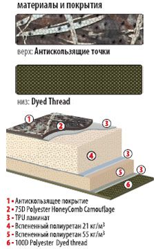 • 100D Polyester Dyedthread сверхпрочная ткань, армированная специальной прочной нитью. Структура ткани предотвращает скольжение без использования дополнительного антискользящего покрытия.