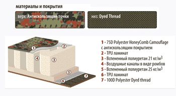 • 75D HoneyComb полиэстровая ткань, армированная дополнительной прочной нитью, в виде сот.