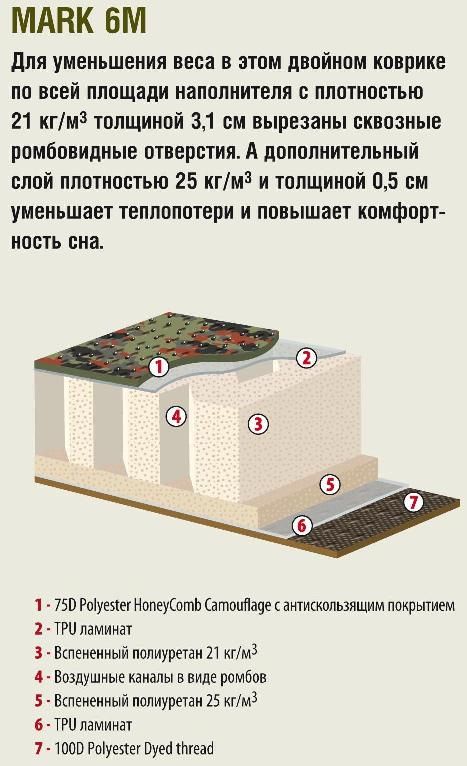 Самонадувающийся коврик Mark 6M от Alexika из специальной "продвинутой" серии Tengu максимально облегченная версия двойного коврика, с двухслойным полиуретаном. Слой более плотного полиуретана защищает от холодной земли, а верхний мягкий добавляет комфорт и уменьшает общий вес.