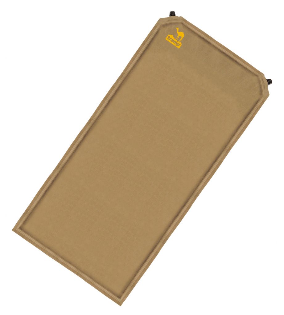 Коврик самонадувающийся Tramp TRI-011 - самонадувающийся коврик новой сверхкомортной серии. Материал верхнего слоя ковров данной серии выполнен из тканой замши, это не позволит спальнику сползать с ковра и обеспечит дополнительную мягкость, сохраняя тепло вашего тела. Структура низа ковра - SlidesLess (точечное гелеобразное нанесение) не даст ему скользить по дну палатки при расположении на наклонных поверхностях. В комплекте тканевый чехол и стягивающие ремни.