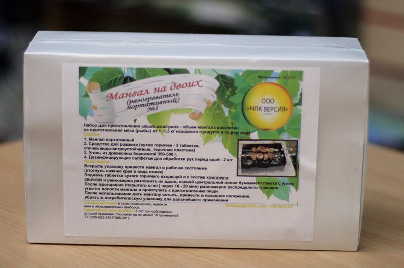 Мангал для двоих - набор, содержащий все необходимое для приготовления шашлыков из 1-1,5 кг мяса или рыбы. Компактный, легкий и простой в применении портативный мангал легко взять собой; рассчитан на не менее десяти применений.