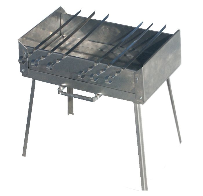 Мангал-дипломат Восточный + 6 шампуров представляет собой склепанную и согнутую металлическую конструкцию из листовой стали 1,5 мм. Шампуры выполнены из нержавеющей стали, разрешенной для контакта с продуктами питания.