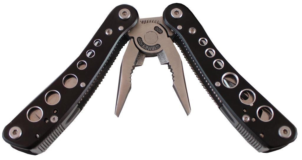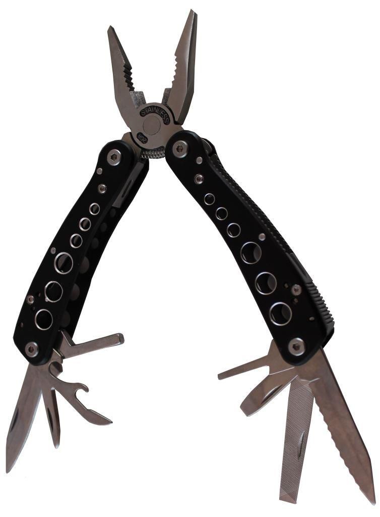 Мультитул Следопыт 18 предметов - многофункциональный инструмент из особопрочной нержавеющей инструментальной стали с восемнадцатью функциями для использования в быту, на отдыхе, в путешествиях и походах.