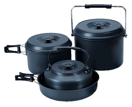 RockLand комплект посуды C5604 - набор посуды из анодированного алюминия. Складные ручки посуды и синтетический мешочек позволяют разместить набор компактно  рюкзаке.
