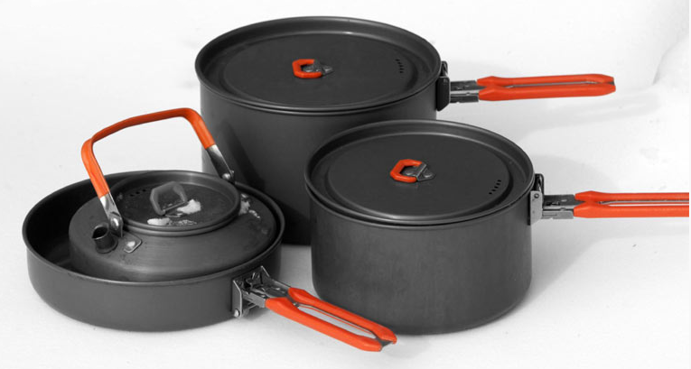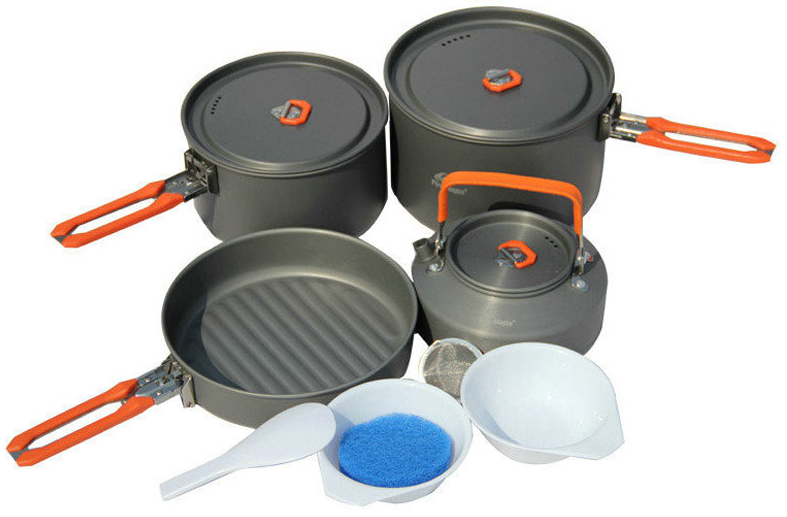 Набор посуды на 4-5 персон Feast 4 - набор посуды из анодированного алюминия на 4-5 человек, позволит приготовить и употребить любые виды блюд в походе или на пикнике. Все предметы помещаются друг в друга и имеют складные ручки, что обеспечивает компактность набора при хранении и транспортировке.