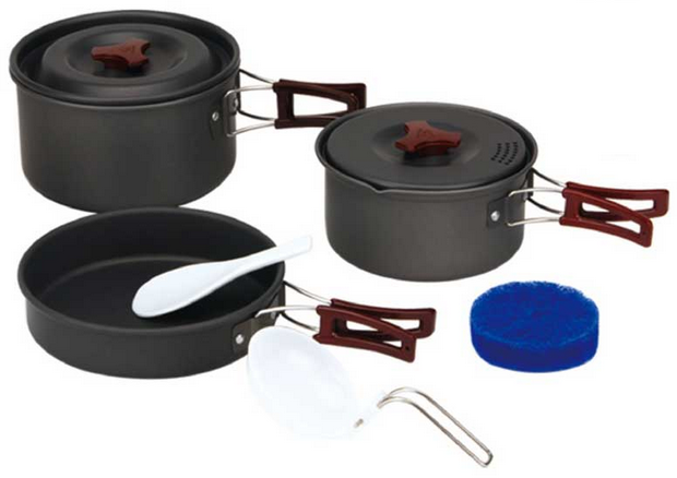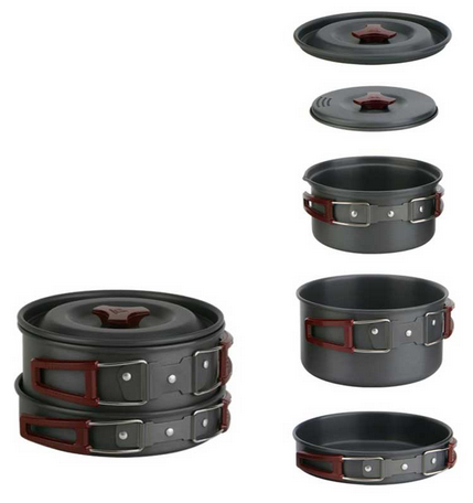 Набор посуды на 2-3 персоны FMC-202 - набор посуды из анодированного алюминия на 2-3 человека, позволит приготовить и употребить любые виды блюд в походе или на пикнике. Все предметы помещаются друг в друга и имеют складные ручки, что обеспечивает компактность набора при хранении и транспортировке.