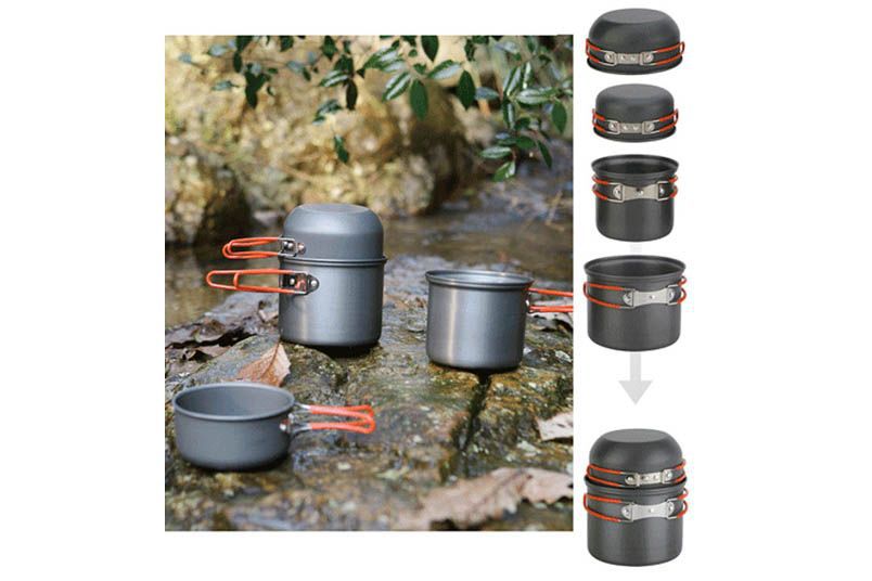 Набор посуды на 2-3 персоны FMC-208 - набор из двух алюминиевых котелков с крышками, рассчитан на двух-трех человек. Маленький котелок помещается внутрь большого, что обеспечивает компактность набора, а внутрь маленького котелка помещается газовый баллон и горелка. Так же в комплекте губка для мытья посуды и сетчатый нейлоновый мешочек.