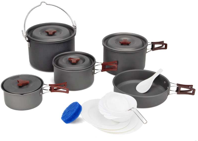 Набор посуды на 6-7 персон FMC-213 - набор посуды из алюминия на 6-7 человек, позволит приготовить и употребить любые виды блюд в походе или на пикнике большой компанией. Все предметы помещаются друг в друга и имеют складные ручки, что обеспечивает компактность набора при хранении и транспортировке.