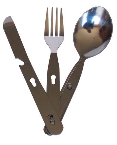 Набор столовых приборов в чехле - набор из ложки, вилки и ножа, которые можно скрепить вместе.