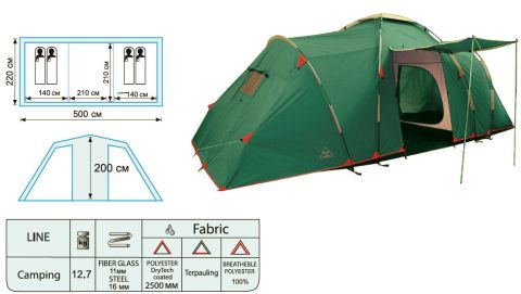 Brest 4 палатка 11 - двухслойная кемпинговая палатка с двумя входами, большим тамбуром и двумя спальнями.