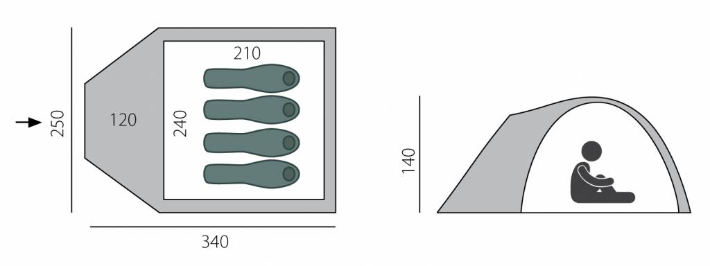 • Вход во внутреннюю палатку дублирован противомоскитной сеткой