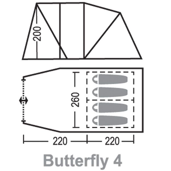 Butterfly Баттерфляй 4 палатка - уникальная кемпинговая палатка повышенной устойчивости с просторным светлым тамбуром, который может быть превращен в козырек, и двумя уютными спальными отделениями. Возможна отдельная установка тента.