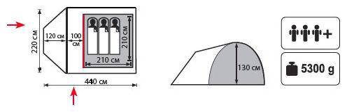 Carriage 3+ палатка 11 - двухслойная палатка с двумя входами и увеличенным тамбуром для использования в весеннее, летнее и осенне время.