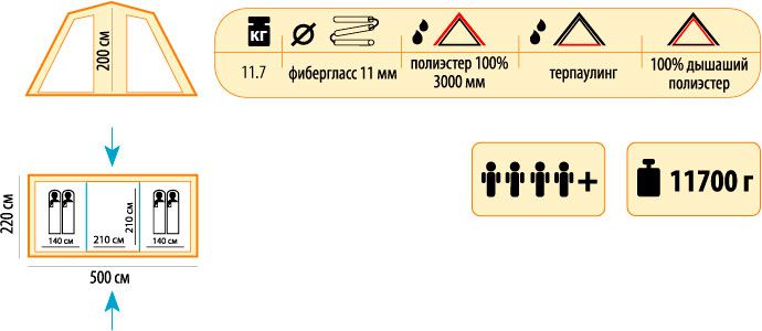 • Тент палатки оборудован ветрозащитной юбкой