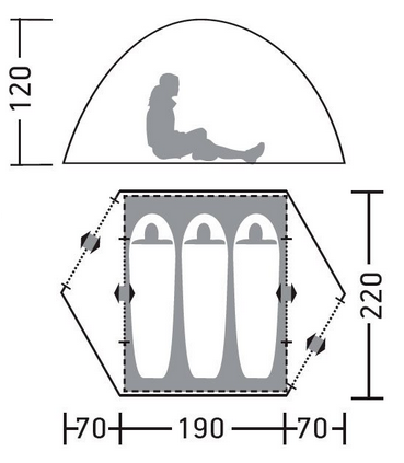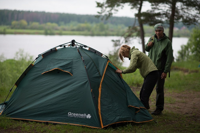 Дингл 3 v.2 палатка-автомат - двухслойная дуговая палатка с полуавтоматическим каркасом, двумя входами и двумя тамбурами. Небольшая трехместная универсальная палатка, отличающаяся быстротой сборки - легко устанавливается одним человеком.
