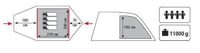 Drift 4 палатка - двухслойная кемпинговая палатка с двумя входами и большим тамбуром, который может использоваться как склад для вещей или под кухню/столовую.