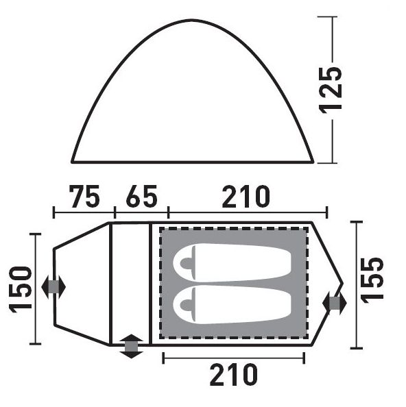 Каван 2 палатка - комфортная палатка с тремя входами и тремя тамбурами, которые позволят разместить большое количество багажа. Возможна установка без тента.