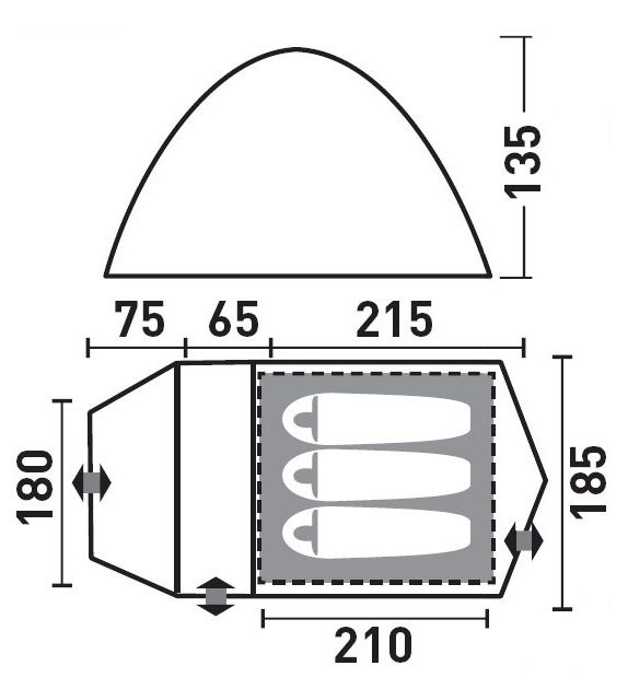 Каван 3 палатка - комфортная палатка с тремя входами и тремя тамбурами, которые позволят разместить большое количество багажа. Возможна установка без тента.
