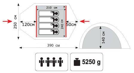 Lair 4 палатка 11 - универсальная двухслойная палатка с двумя входами и одним тамбуром для туристических походов в весеннее, летнее и осеннее время.