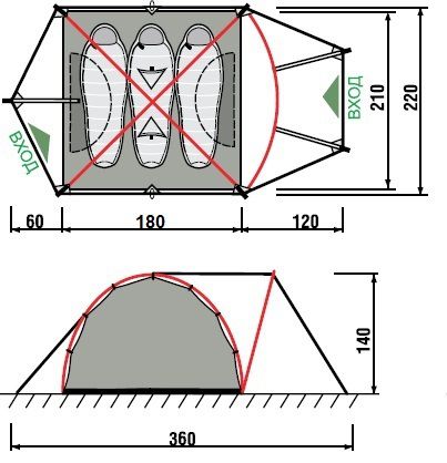 Pamir 3 палатка - двухслойная куполообразная палатка с двумя входами и тамбурами.