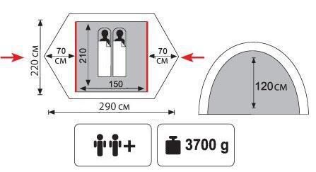 • Внешний тент палатки устойчив к ультрафиолетовому излучению