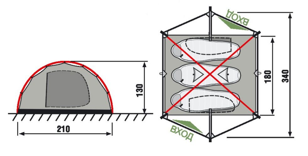 • Вход палатки продублирован противомоскитной сеткой