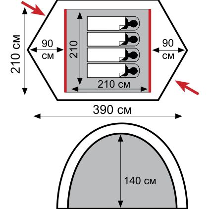 • Два вентиляционных клапана с возможностью открытия изнутри палатки