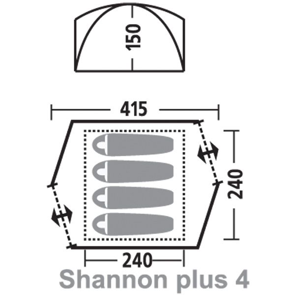 Шенон плюс 4 палатка - универсальная палатка с двумя входами, двумя открытыми тамбурами и тентом с большим козырьком, оснащённая проточной вентиляцией и штормовыми оттяжками для повышенной устойчивости. Возможна установка без тента.