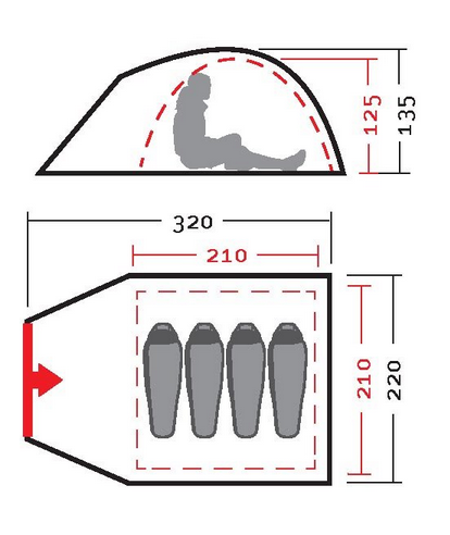 Терра 4 V2 палатка с в/з юбкой - новая версия двухслойной туристической палатки с просторным тамбуром, эффективной системой проточной вентиляции, обеспечивающей комфорт даже в летний зной, дополнительной дугой, образующей над входом крышу, которая препятствует попаданию дождя внутрь даже при открытой двери тамбура. Обладает повышенной ветроустойчивостью благодаря ветрозащитной юбке.